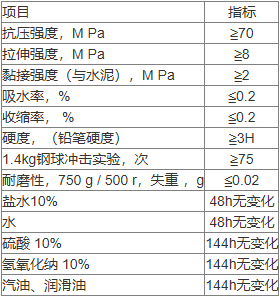 1、由双组份耐磨环氧树脂材料施工而成,收缩率小,制成品表面 整体无缝,有一定韧性;